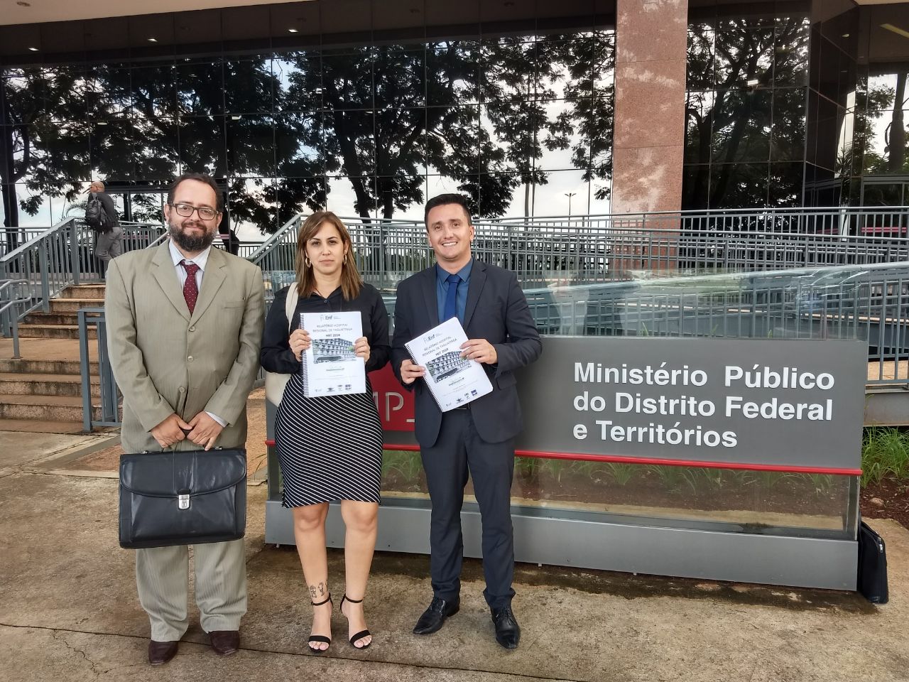 Dayse Amarílio, presidente do Sindicato dos Enfermeiros, e Jonhatan Rodrigues, procurador do Conselho Regional de Enfermagem, entregaram o documento à promotora do MPDFT, Ana Laura Dias e ao Secretário Adjunto da SEPLAG, Marcelo Soares.