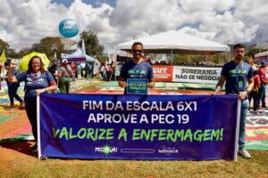 Durante o ato, o Sindicato dos Enfermeiros do DF também levantou a pauta da PEC 19, que visa alterar a Constituição para vincular o piso salarial da Enfermagem a uma carga horária máxima de 36 horas semanais